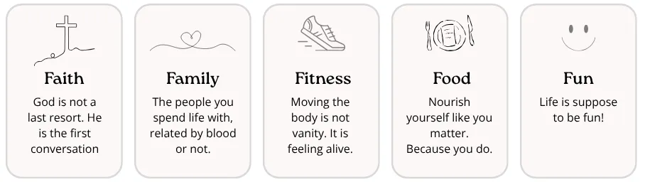 Faith, Family, Fitness, Food, and yes, even Fun.